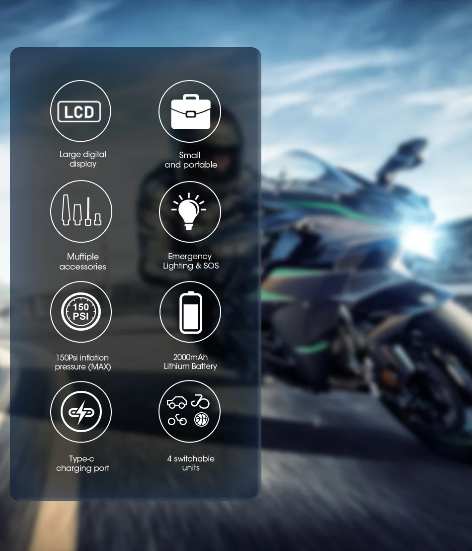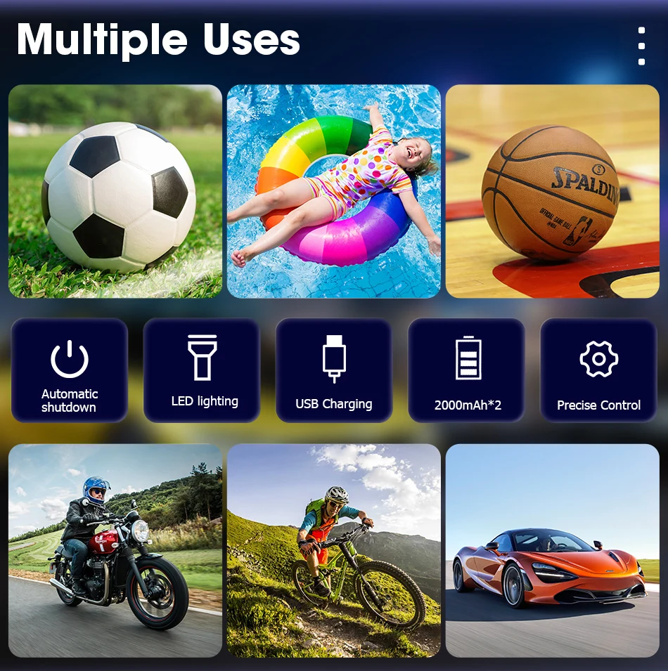 2000mAh Lithium Ultra-long battery life max 150PSI pressure1. Full chargeable 10 car tires(full in about 4 minutes)