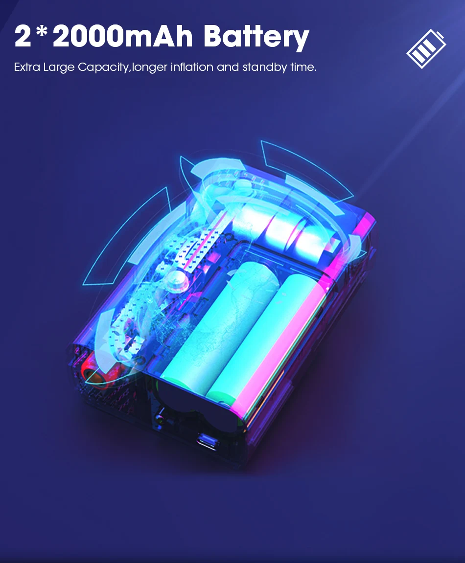 2*2000mAh Battery (Replaceable)Extra large capacity, longer inflation and standby time.
