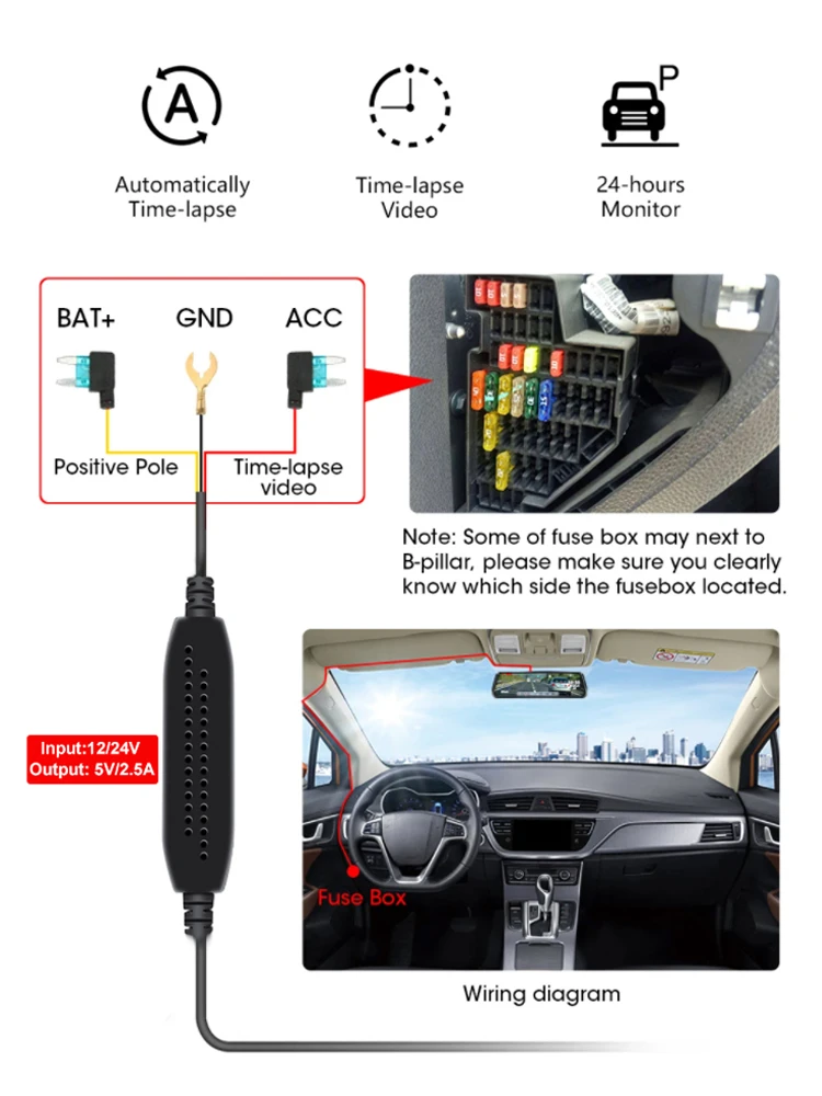 To use the hard wire kit, you’ll need to connect the Type C car charger to the dashboard camera or DVR, and then connect the power inverter converter adapter to the vehicle’s electrical system using the included hard wire cables. This will allow the camera or DVR to be powered continuously, even when the ignition is turned off. The hard wire kit can also be used to provide power to other devices that use a Type C charging cable.